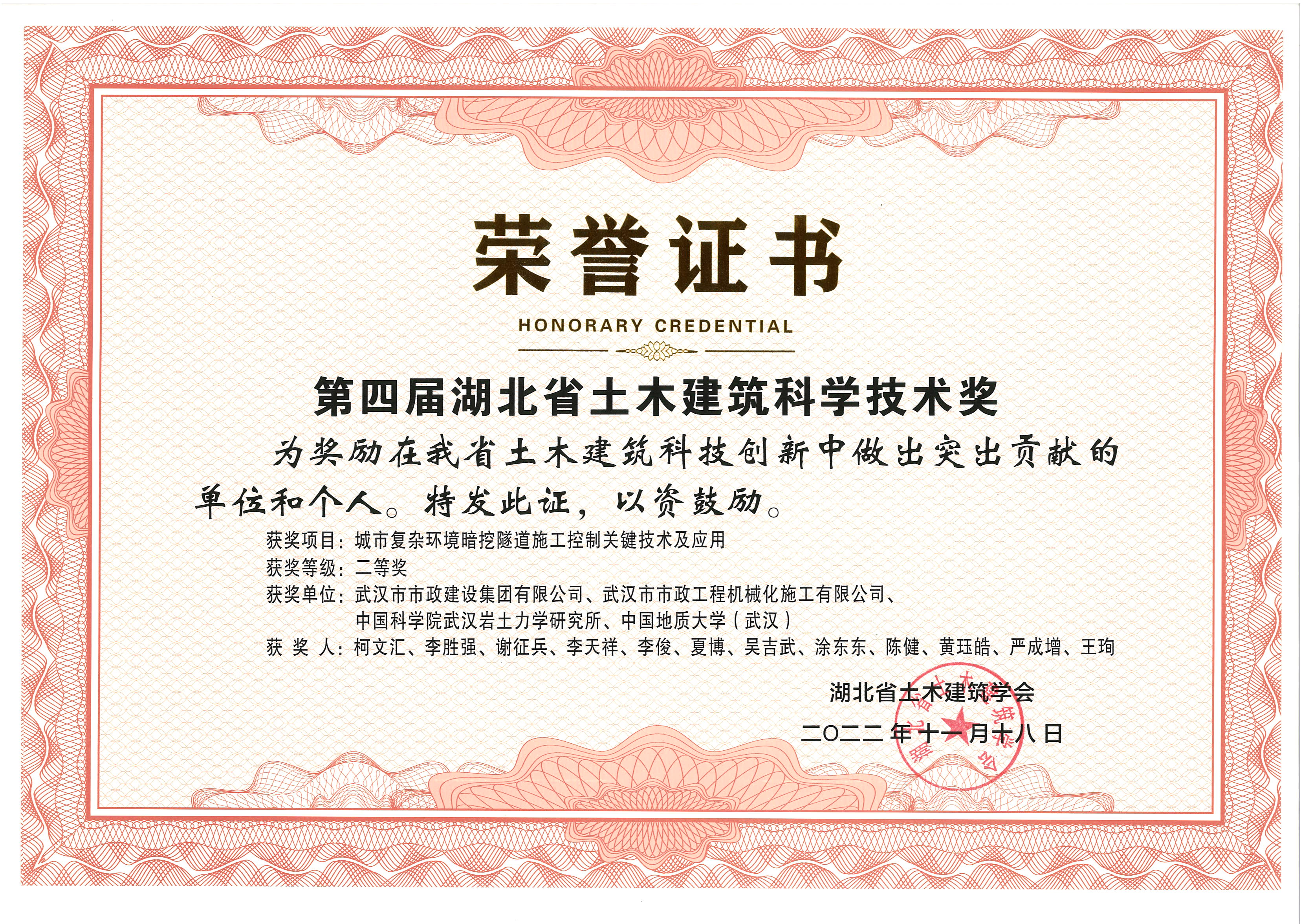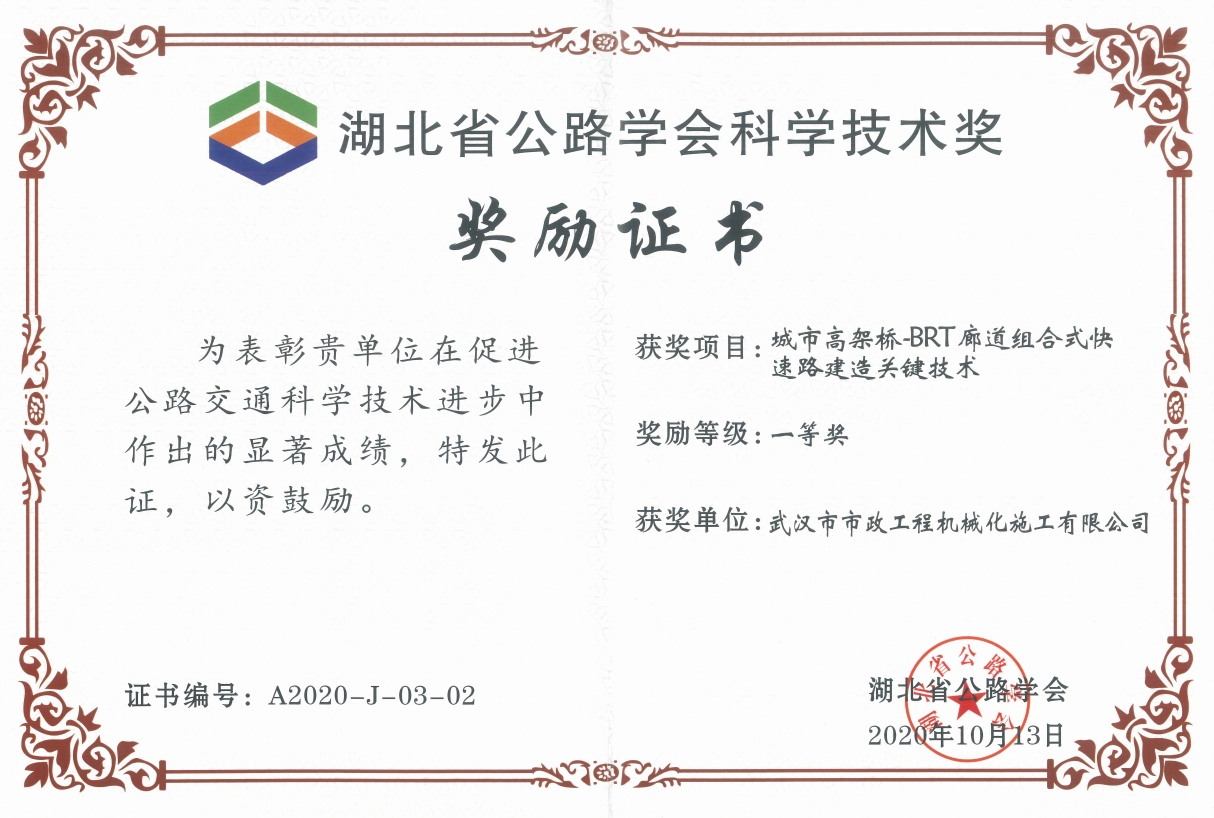 湖北省公路學(xué)會科學(xué)技術(shù)獎(jiǎng)