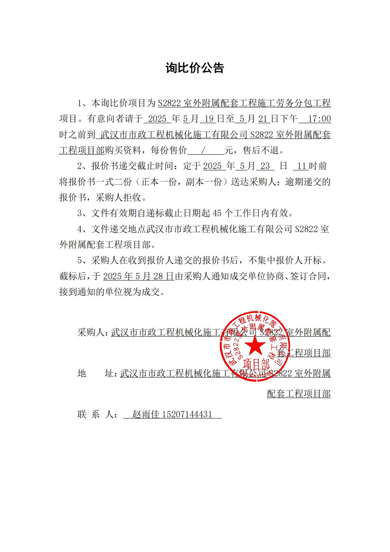 S2822室外附屬配套工程施工勞務(wù)分包工程詢價(jià)公告
