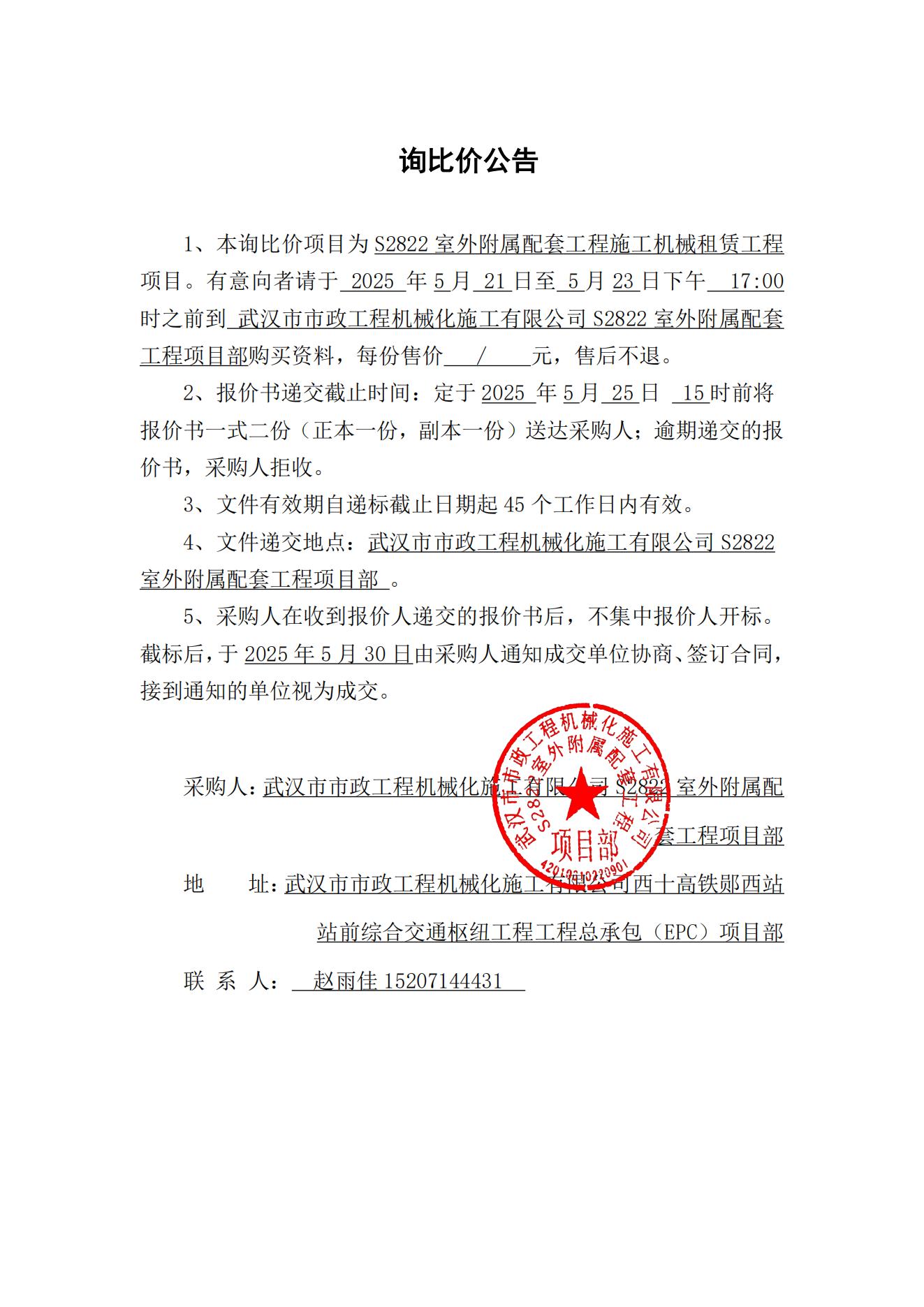 S2822室外附屬配套工程施工機械租賃工程詢價公告