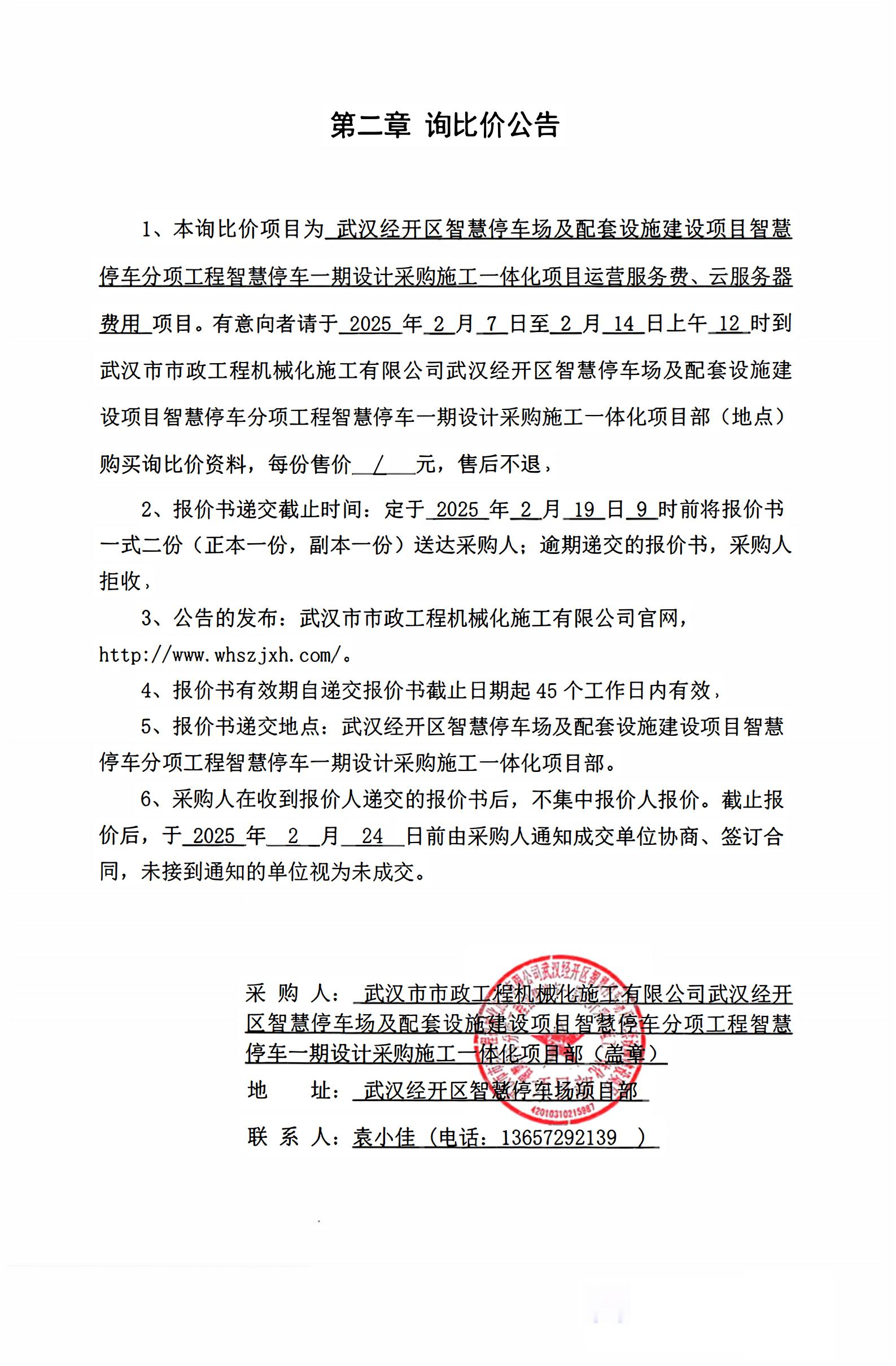武漢經(jīng)開(kāi)區(qū)智慧停車場(chǎng)及配套設(shè)施建設(shè)項(xiàng)目智慧停車分項(xiàng)工程智慧停車一期設(shè)計(jì)采購(gòu)施工一體化項(xiàng)目運(yùn)營(yíng)服務(wù)費(fèi)、云服務(wù)器費(fèi)用詢價(jià)公告