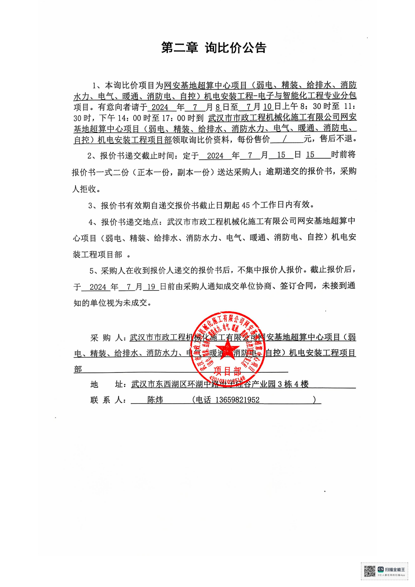 網(wǎng)安基地超算中心項(xiàng)目(弱電、精裝、給排水、消防水力、電氣、暖通、消防電、自控)機(jī)電安裝工 程-電子與智能化工程專業(yè)分包采購(gòu)詢價(jià)公告