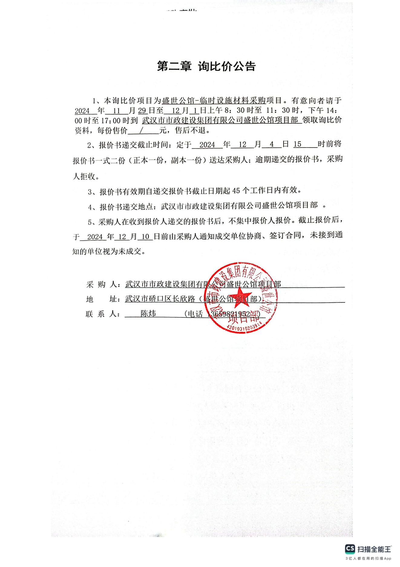 盛世公館-臨時(shí)設(shè)施材料采購詢價(jià)公告