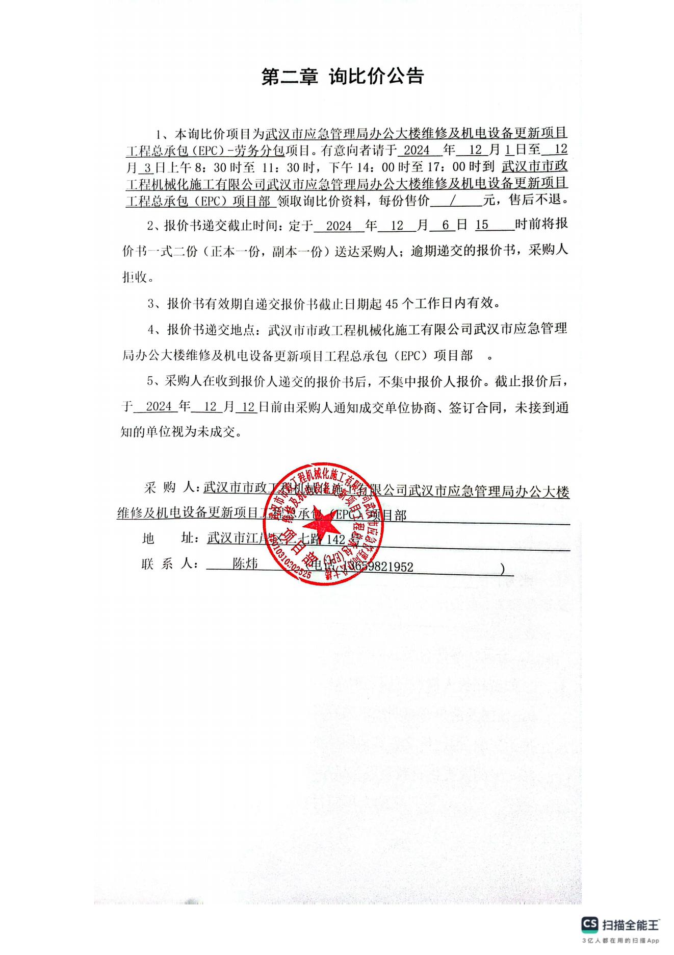 武漢市應(yīng)急管理局辦公大樓維修及機(jī)電設(shè)備更新項(xiàng)目工程總承包(EPC)-勞務(wù)分包詢價公告