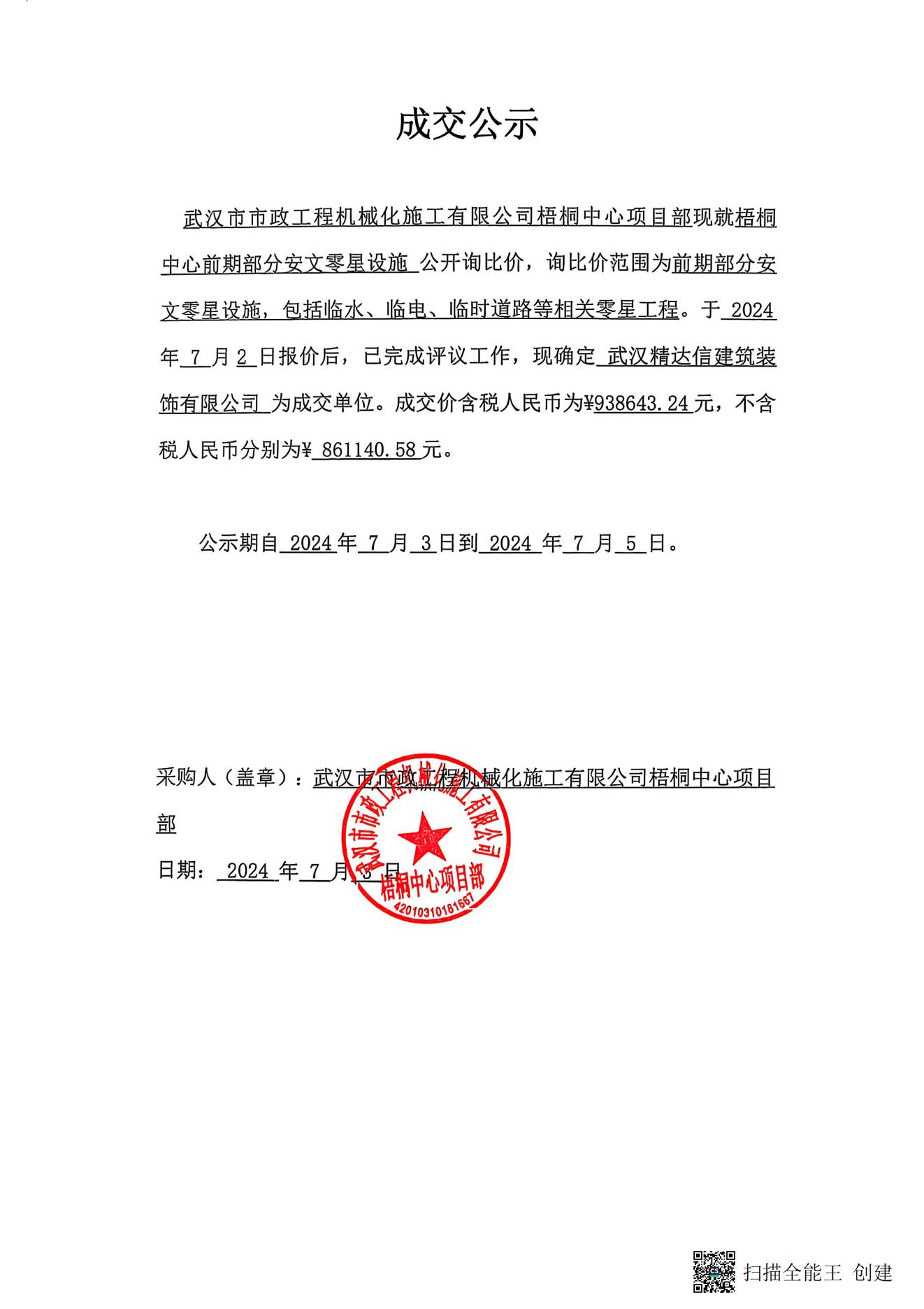 梧桐中心前期部分安文零星設(shè)施成交公示