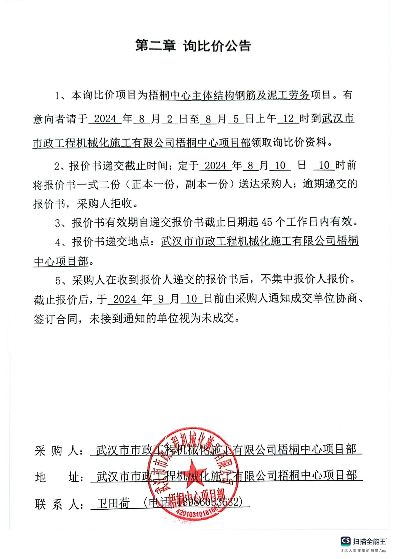 梧桐中心主體結(jié)構(gòu)鋼筋及泥工勞務(wù)詢價(jià)公告