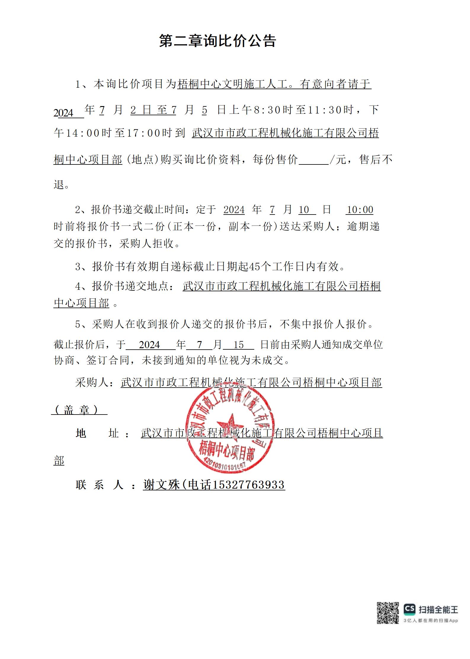 梧桐中心文明施工人工詢價公告
