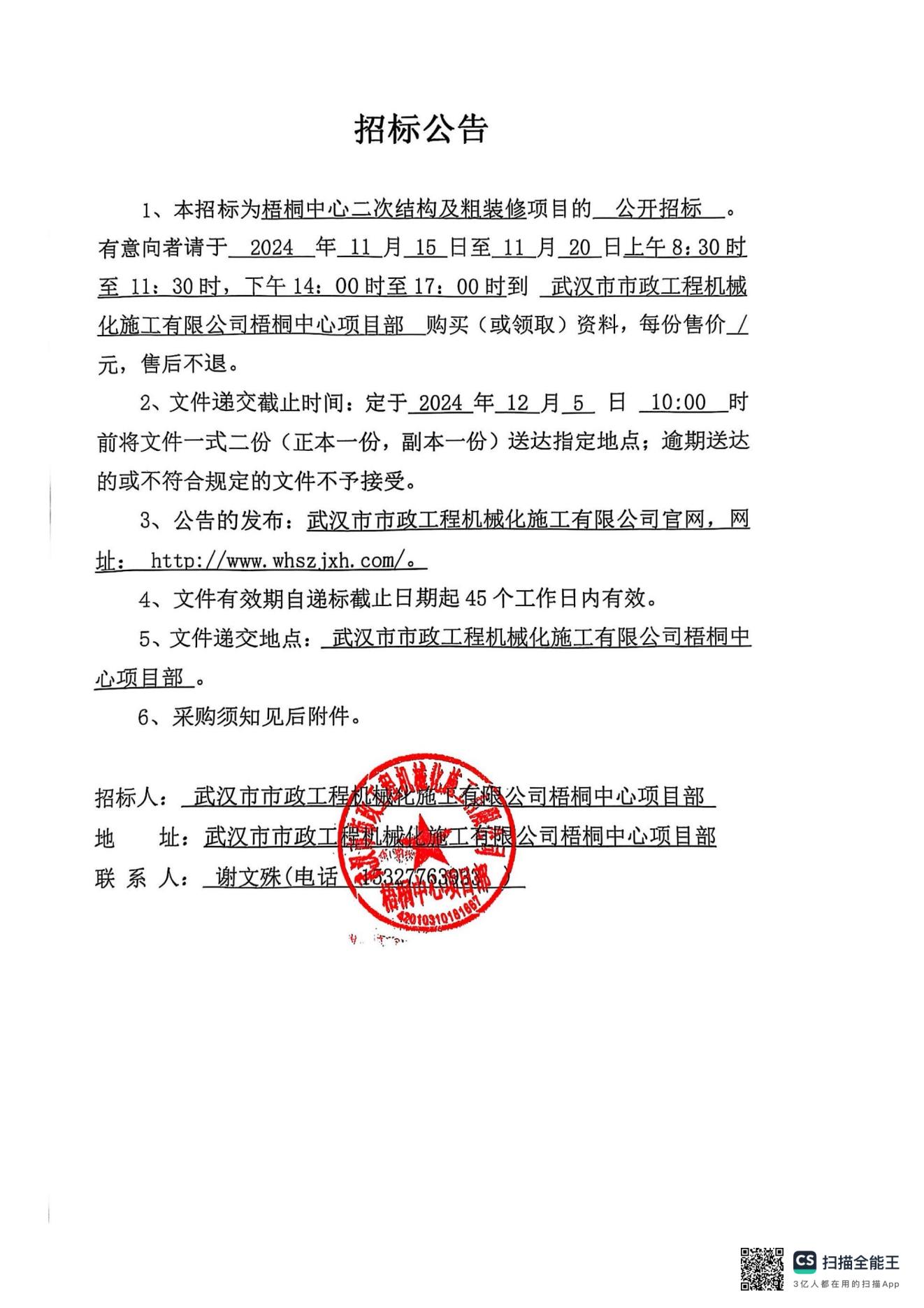 梧桐中心二次結(jié)構(gòu)及粗裝修招標(biāo)公示