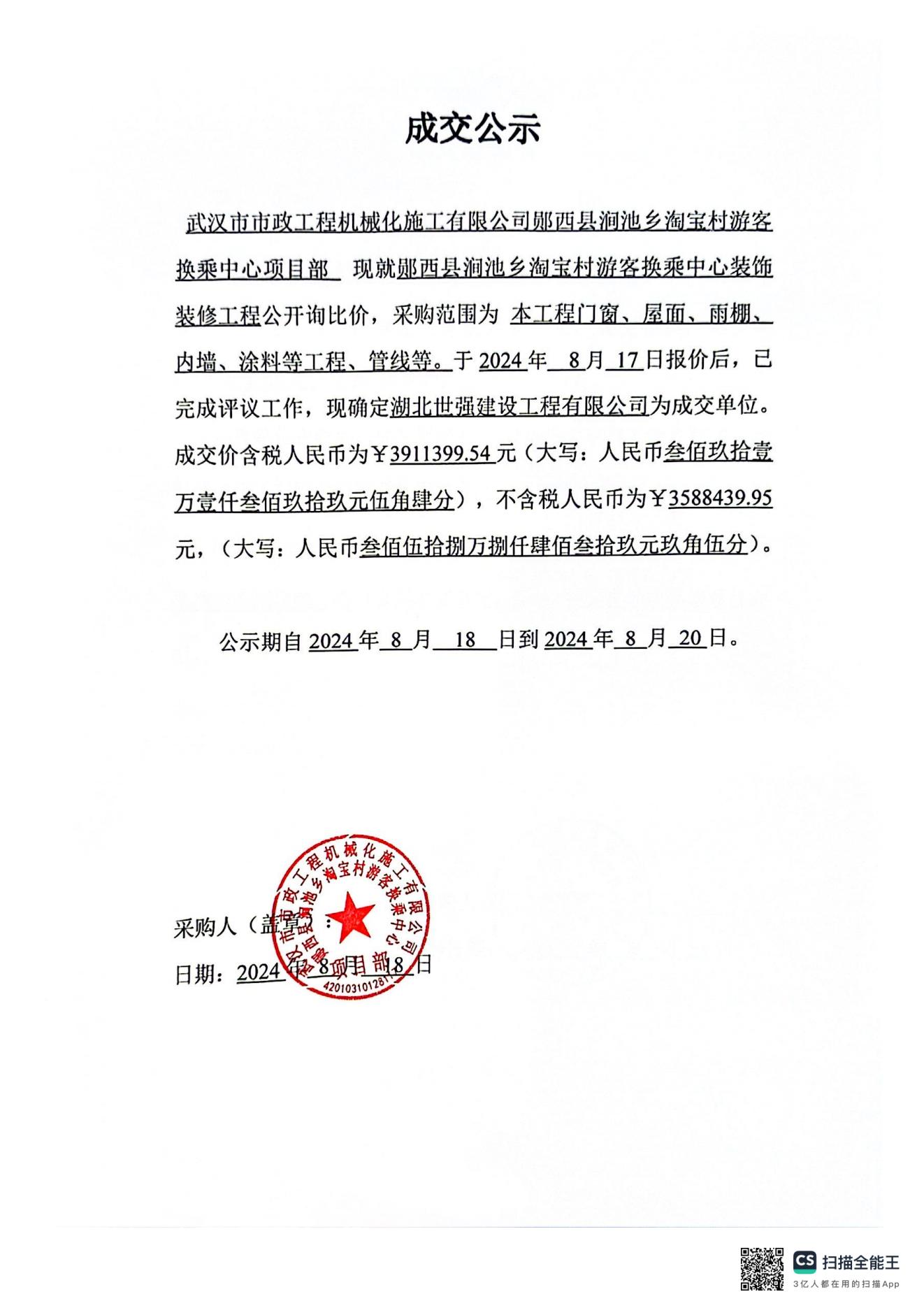 鄖西縣澗池鄉(xiāng)淘寶村游客換乘中心裝飾裝修工程中標(biāo)公示