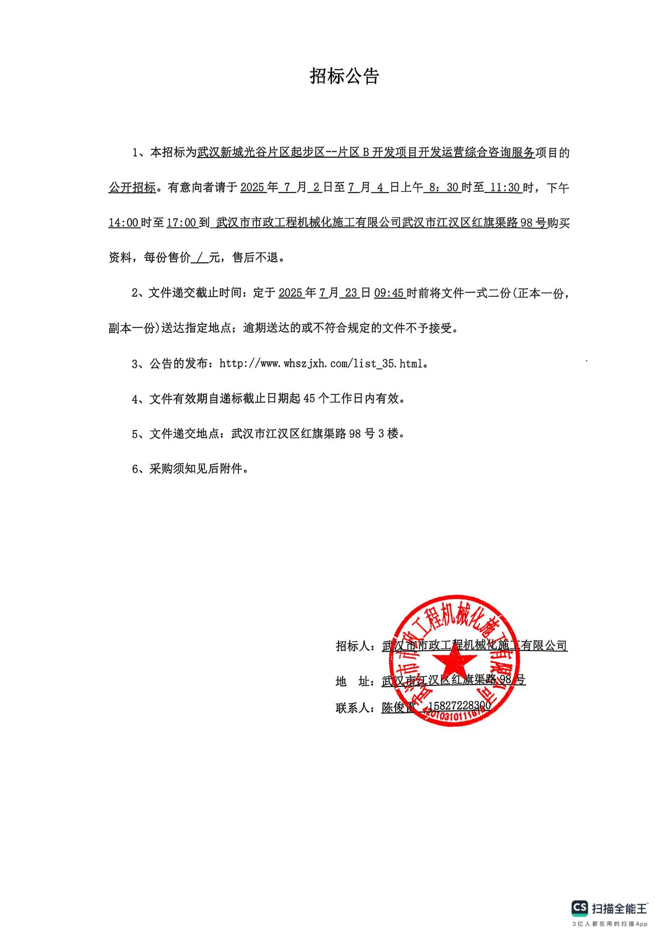 武漢新城光谷片區(qū)起步區(qū)--片區(qū)B開發(fā)項目開發(fā)運(yùn)營綜合咨詢服務(wù)招標(biāo)公告